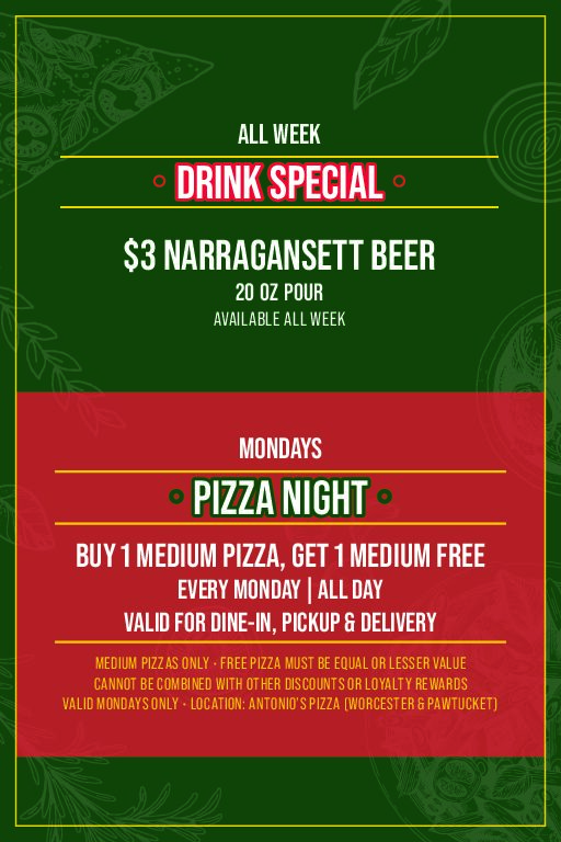 pawtucket 727 East AvenuePawtucket, RI 02860401-725-0808 Order Online DINE IN ONLY. RESTRICTIONS MAY APPLY. NOW HIRING Please submit your application through this form. Your name Your email Location ---Amherst, MABelchertown, MACollege Station, TXEast Hampton, MANewport, RIPawtucket, RIProvidence, RIWorcester, MA Position ---BartenderHost/HostessServerCookDelivery DriverCashier Your message (optional) Upload Resume CONTACT US DELIVERY KITCHEN & BAR PIZZA BY THE SLICE PICK UP FUNDRAISING OUTDOOR PATIO DINING ROOM